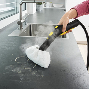 Комплект поставки: - пароочиститель - три вида насадок - два комплекта тканевых насадок (один запасной) - удлиняющие трубки - средство от камневых осадков (спрей) - резиновые перчатки - мерный кувшин - удлинительный кабель 5м Пароочиститель Kärcher SC 2 может выполнять очистку без применения каких-либо химических средств. Используется для очистки кухонных поверхностей, въевшихся жировых и пищевых отложений внутри духовых шкафов, на плитах, варочных панелях, в микроволновках, вытяжках и т.д. Также пароочиститель способен удалять налёт от жёсткой воды с кранов, раковин, душевых кабин, унитазов, стиральных машин и т.д. Но главной особенностью пара, выходящего под высоким давлением из сопла, является способность проникать в самые труднодоступные щели и пространства, буквально выметая недоступную для других методов грязь. При тщательной очистке пароочистителем Kärcher уничтожается 99,99% распространенных в быту бактерий на твердых поверхностях. Даже стойкие загрязнения надежно устраняются. Пароочиститель имеет двухступенчатую регулировку пара, что позволяет адаптировать интенсивность подачи пара к виду очищаемой поверхности и степени загрязнения. А насадка для уборки пола EasyFix с гибким шарниром гарантирует максимальную эргономику, а благодаря пластинчатой поверхности подошвы - прекрасный результат уборки. Если вы ещё ни разу не мыли пол горячим паром - вы удивитесь, сколько грязи соберёт на себя тканевая подошва.