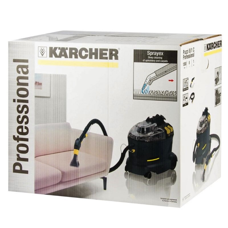 Комплект доставки: - Моющий пылесос экстрактор Karcher PUZZI 8/1 C - Насадка для мебели и влажной чистки - Удлинительный кабель на 5 метров - Мерный кувшин - Резиновые перчатки - Порции чистящего средства Karcher Professional RM 760 приобретаются отдельно: 1 пакетик - 100 рублей. 1 пакетик ~ химчистка одного трёхместного дивана + дополнительная обработка тяжелых пятен. Karcher Puzzi 8/1 C – профессиональный экстрактор, предназначенный для очистки диванов, кресел, обивки и ковров. Тщательно очищает рабочую поверхность, восстанавливает внешний вид и удаляет неприятные запахи. Имеет несколько режимов очистки, подходящих для очень грязных и не очень грязных поверхностей. Способен самостоятельно равномерно разбрызгивать раствор спецсредства перед основной чисткой. Эта машина обладает лучшей остаточной влажностью среди конкурентов, то есть, вы получаете минимально возможный временной промежуток до эксплуатации мебели.